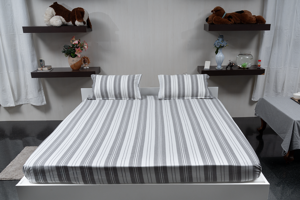 Introducing the Ripple Flow Grey Complete Bedding Set from Linn Decors — a modern blend of flowing textures, calm tones, and everyday comfort. This coordinated set includes a fitted sheet, two matching pillow covers, and a cozy quilt, designed to create a serene and stylish bedroom atmosphere.